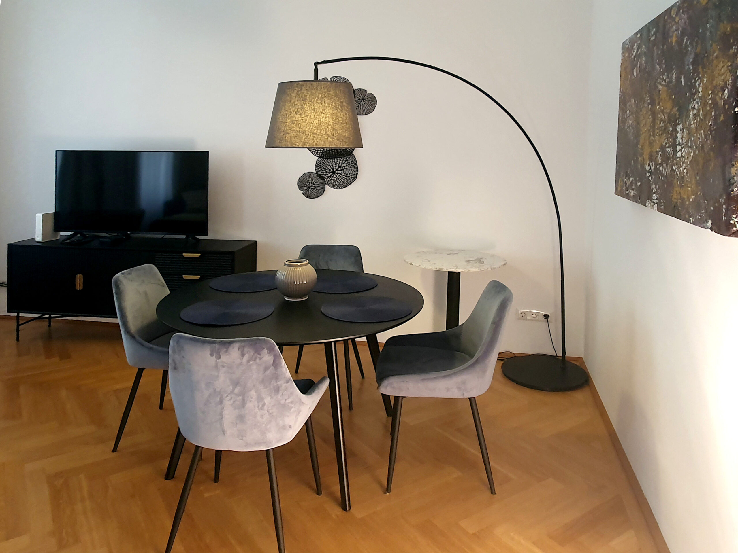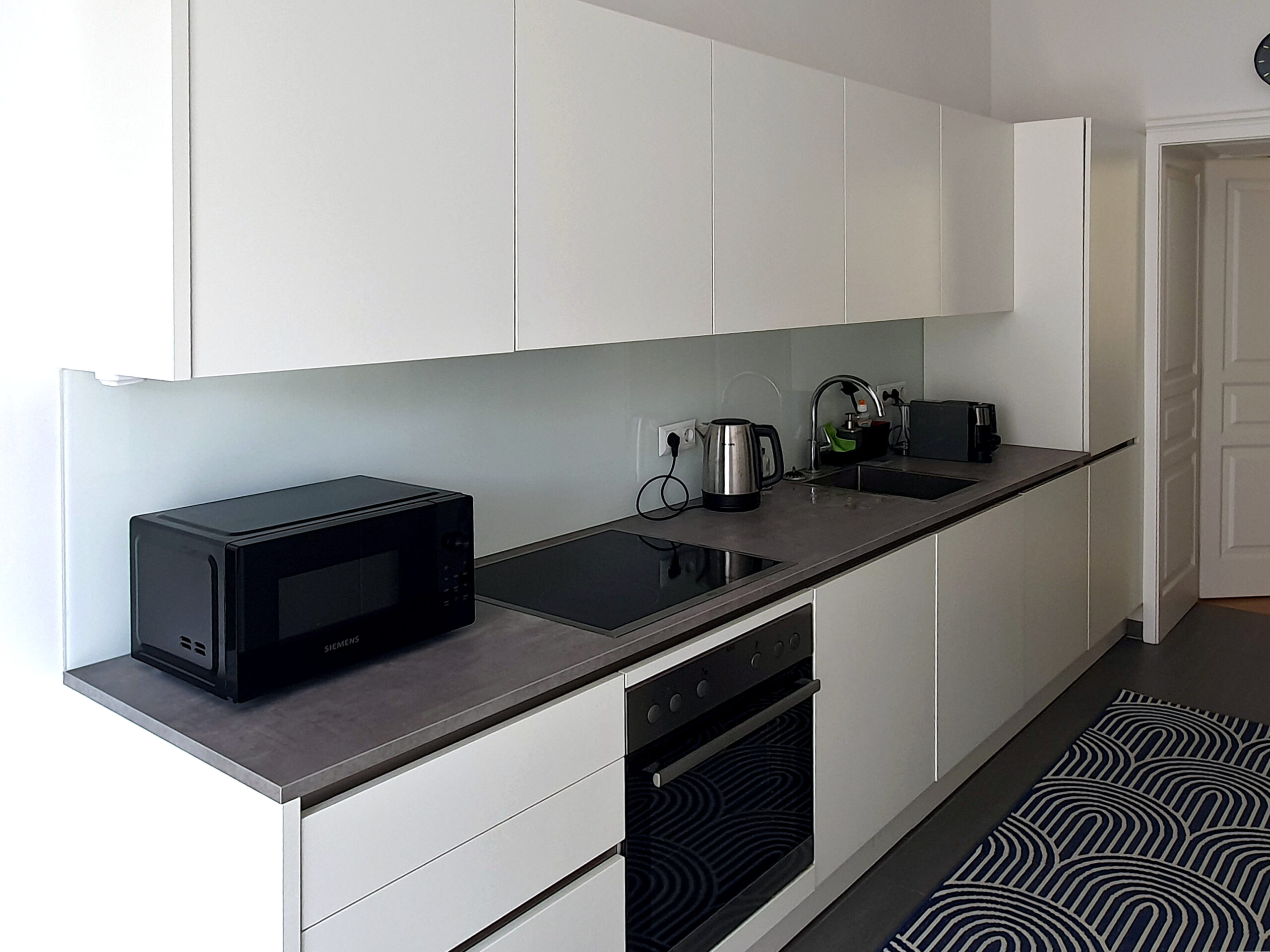 The apartment is fully and tastefully furnished. Like all of our units, it comes equipped with everything you may need – from appliances to dishes, bed linens, towels, cable TV, high-speed internet, and more. For added peace of mind, the apartment is fitted with a high-security, reinforced door.