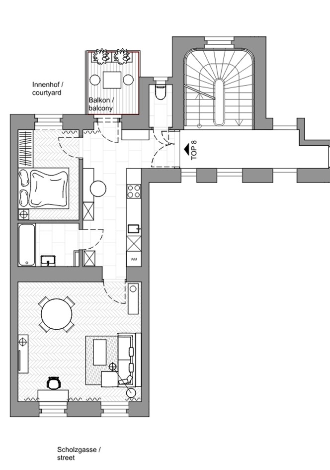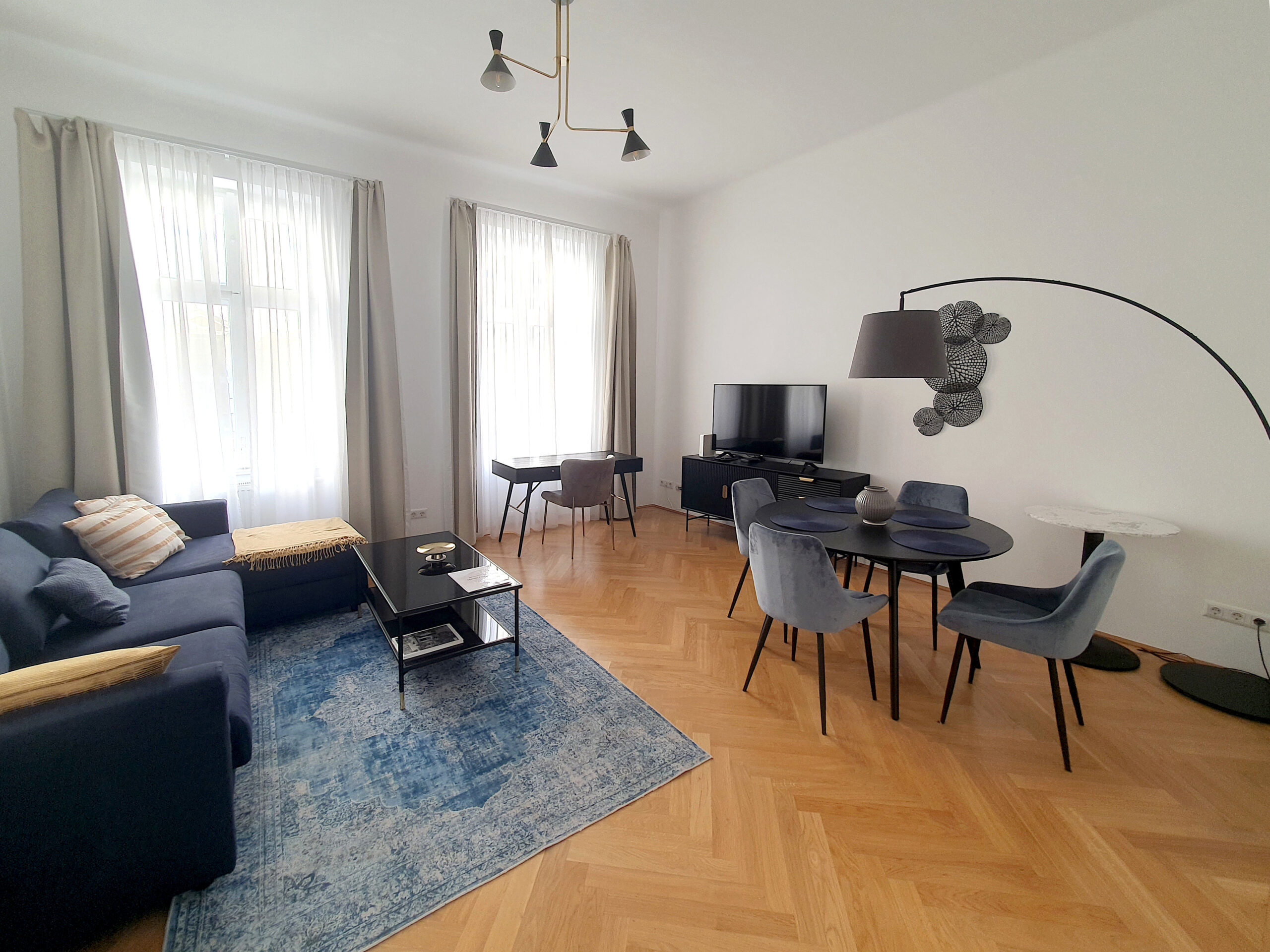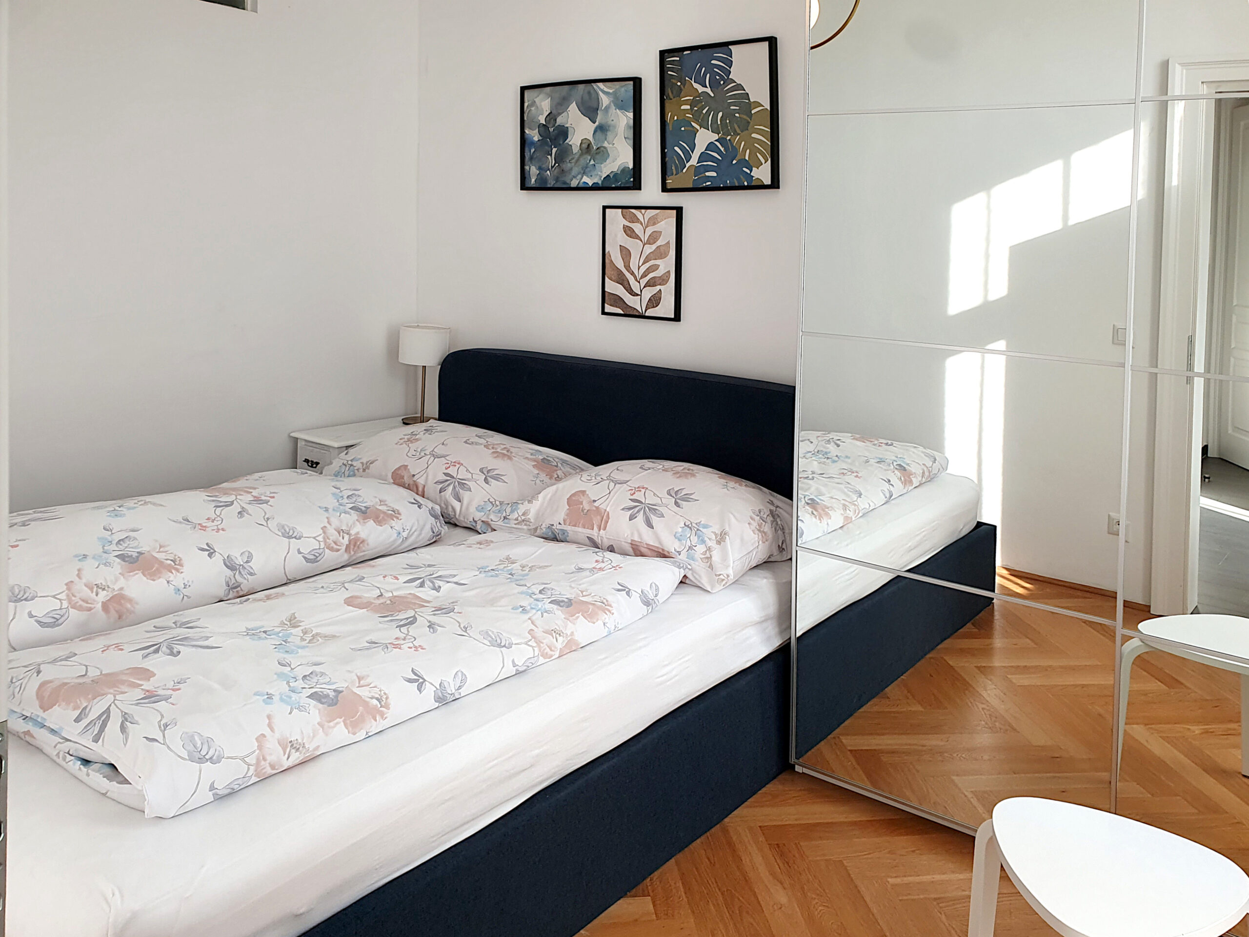 Located on the first floor of a typical Viennese building „Gründerzeit Zinshaus“, this bright apartment consists of a living room, bedroom, kitchen, balcony and bathroom with shower and tub.
