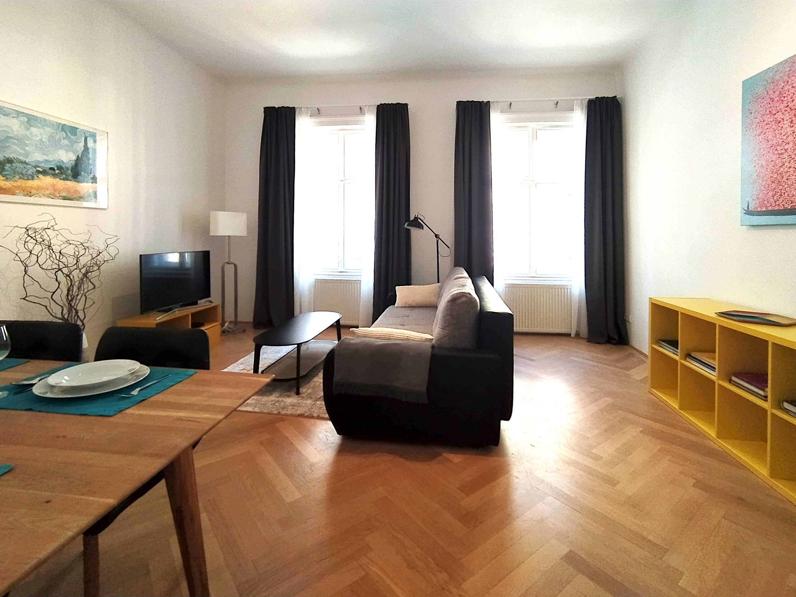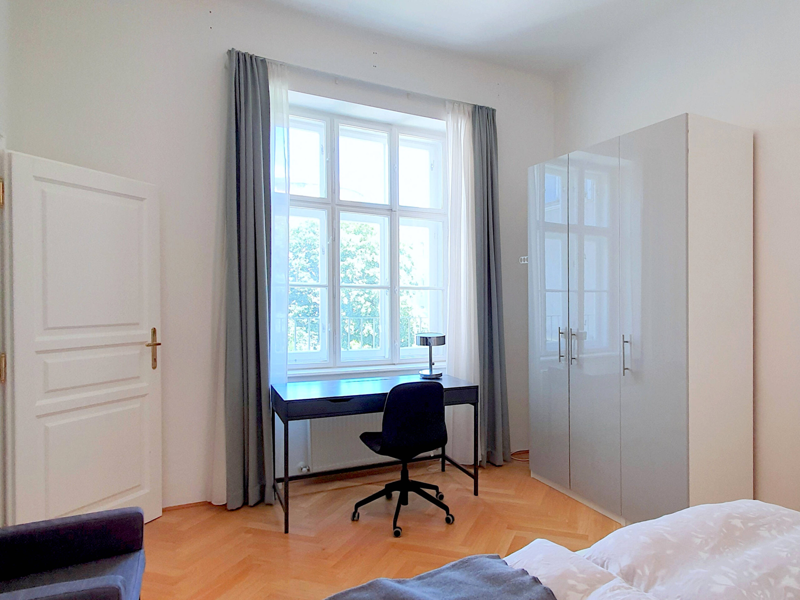 Located on the second floor of a typical Viennese building „Gründerzeit Zinshaus“, this bright apartment consists of a living room, bedroom, kitchen and bathroom.