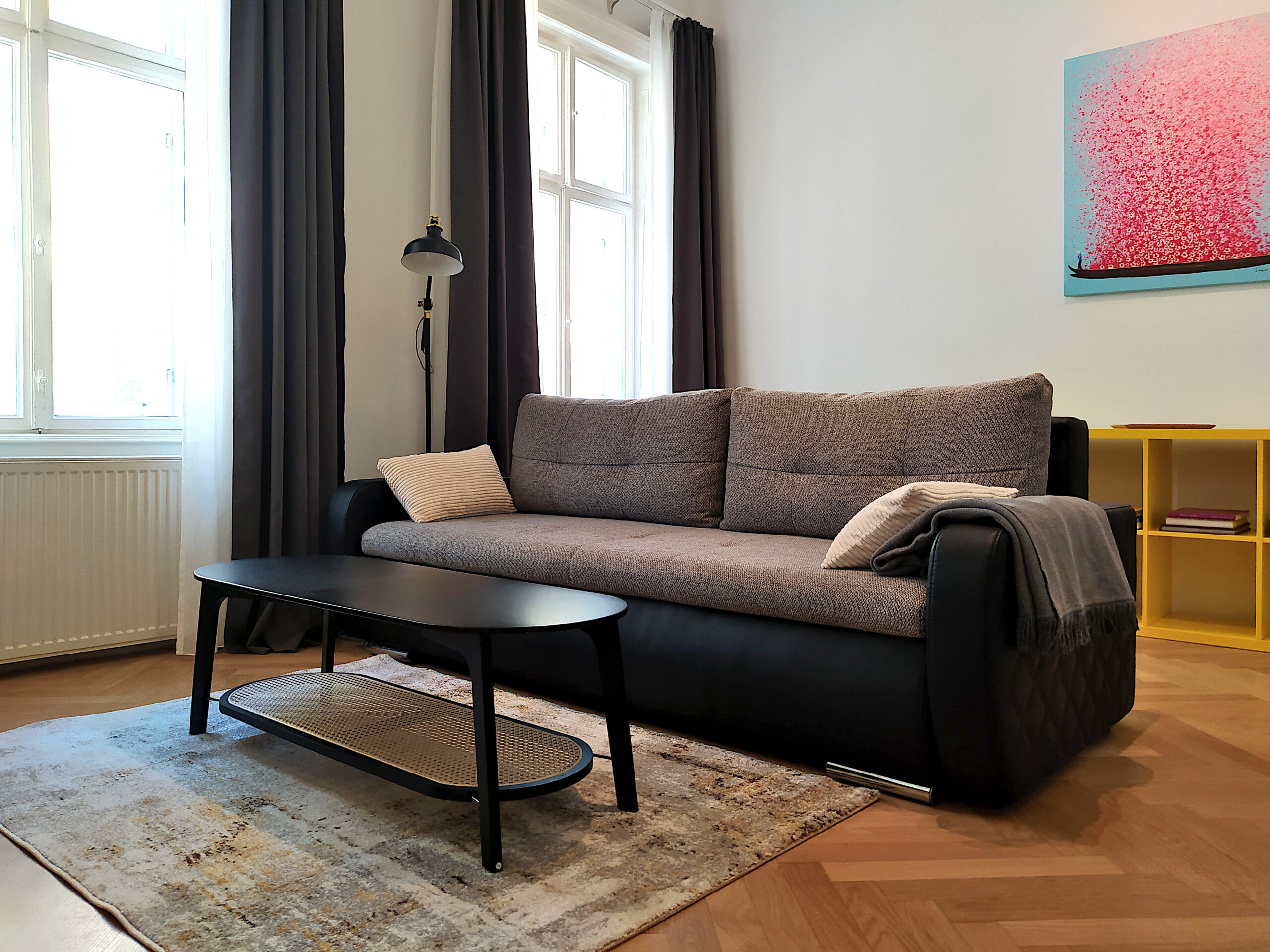 The apartment is fully and tastefully furnished. Like all of our units, it comes equipped with everything you may need – from appliances to dishes, bed linens, towels, cable TV, high-speed internet, and more. For added peace of mind, the apartment is fitted with a high-security, reinforced door.