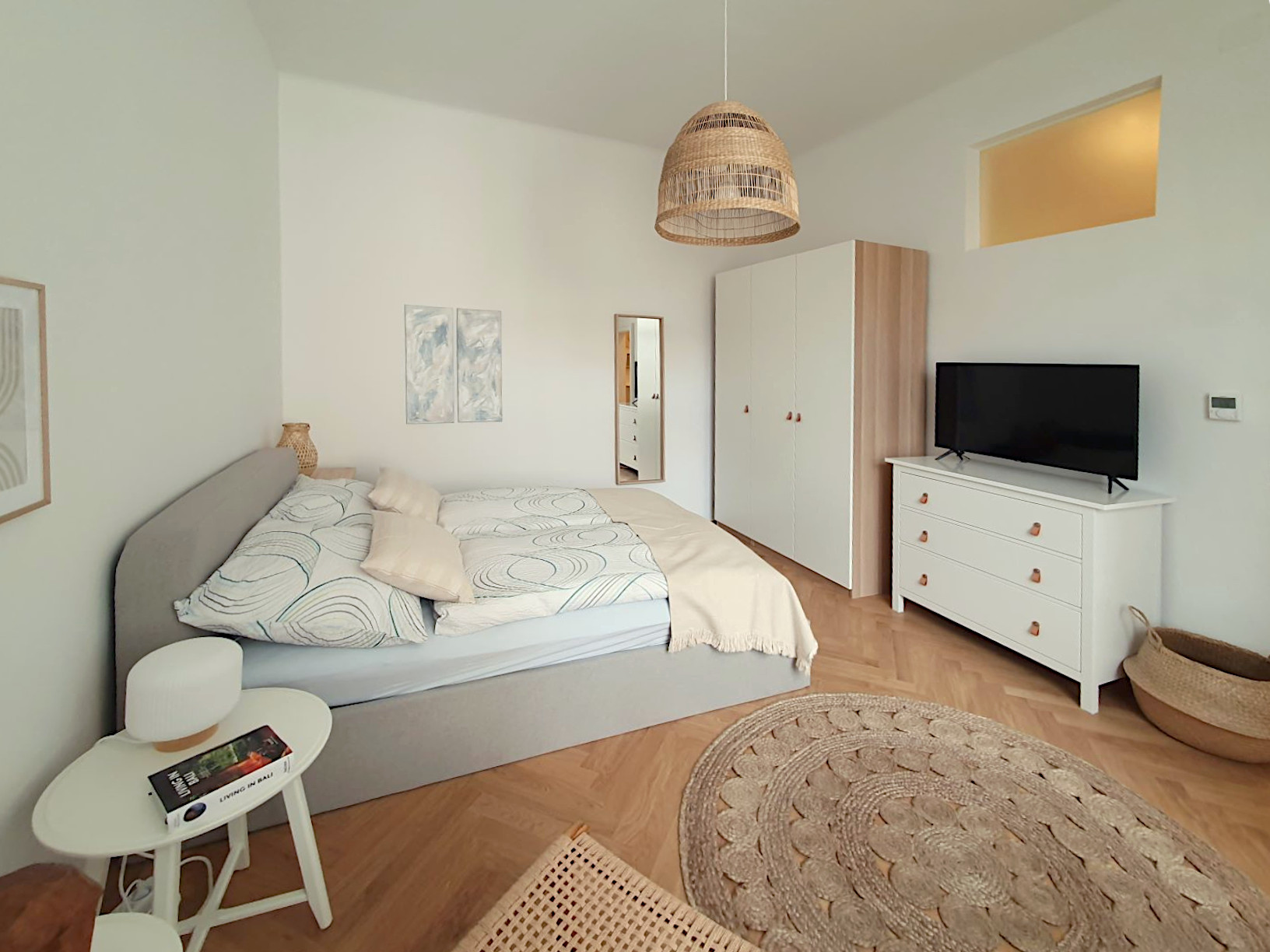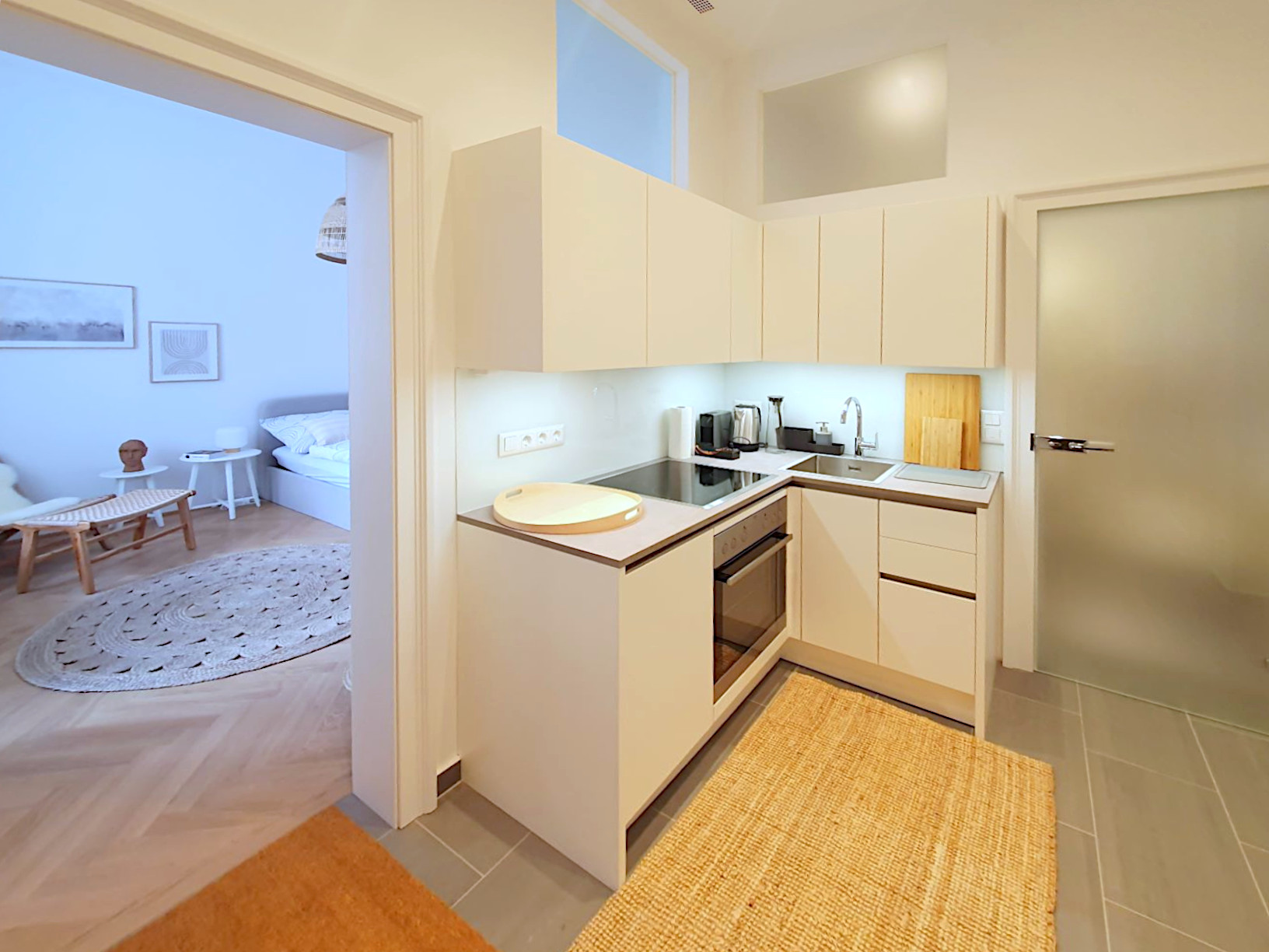 The apartment is fully and tastefully furnished. Like all of our units, it comes equipped with everything you may need – from appliances to dishes, bed linens, towels, cable TV, high-speed internet, and more. For added peace of mind, the apartment is fitted with a high-security, reinforced door.